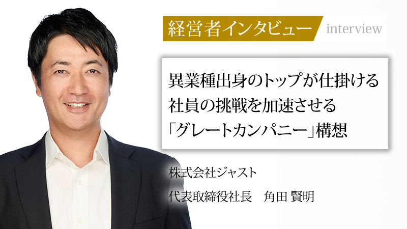 角田賢明/1979年神奈川県生まれ。慶應義塾大学理工学部卒業後、日本アイ・ビー・エム株式会社、三菱UFJモルガン・スタンレー証券株式会社にてM&Aアドバイザリー業務に従事。2015年、株式会社ジャストに入社。2022年より同社代表取締役社長を務める。