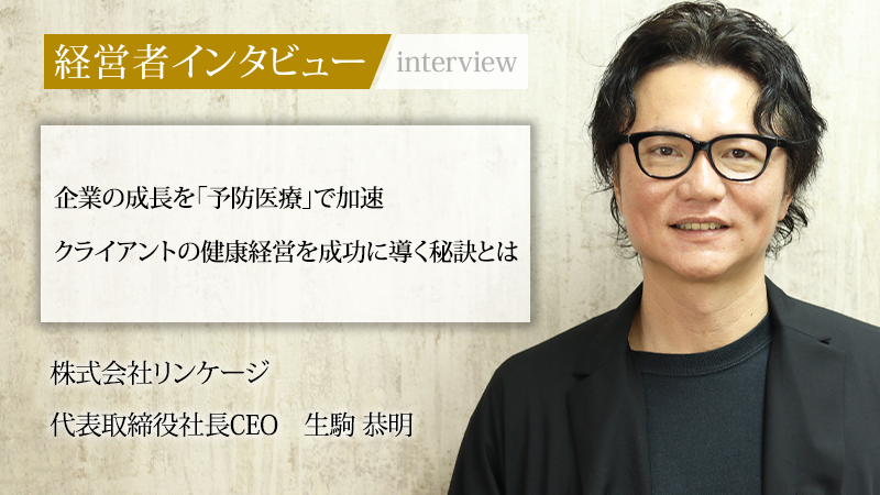 企業や個人の健康リテラシーの向上と行動変容を促し、予防医療の普及を目指す株式会社リンケージ。オンライン禁煙支援からフェムテック、メンタルヘルスケア、さらには心臓突然死のリスクの見える化まで、多岐にわたるサービスをBtoBで展開し、企業の健康経営をサポートしている。ヘルスケア業界に革新をもたらす同社の代表取締役社長CEO、生駒恭明氏に、事業の核心と今後の展望を聞いた。