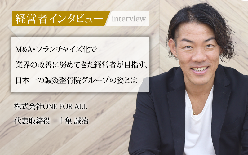 十亀誠治/1980年、福岡県生まれ。福岡柔道専門学校を卒業。2004年に24歳でむさし鍼灸整骨院を開業。2005年に有限会社ONE FOR ALLを設立し、代表取締役に就任。2015年に株式会社ONE FOR ALLに社名を変更。