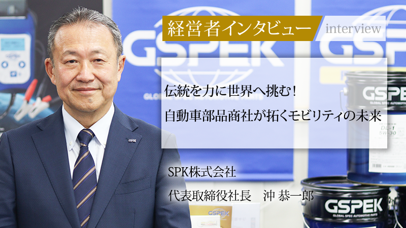 100年以上の歴史を誇る自動車部品・用品および産業車輌部品の商社であるSPK株式会社。同社は、近江商人の「三方よし」の理念を現代に受け継ぎ、国内のみならず世界を舞台に事業を展開している。近年は「VISION2030」を策定し、従来の部品商社の枠を超えた「モビリティビジネスのグローバル商社」への進化を加速させている。この大きな変革を牽引する、代表取締役社長の沖 恭一郎氏に、伊藤忠商事で培った経験を土台とし、いかにして伝統ある企業を革新へと導いているのか、その情熱と未来への展望について聞いた。