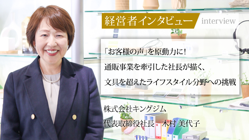 2027年に100周年を迎える株式会社キングジムは、ステーショナリー、電子文具、ライフスタイル用品の企画・製造・販売を行う会社である。現在、代表取締役社長としてその手腕を振るっている木村美代子氏は、オフィス通販「アスクル」をゼロから立ち上げ、その成長を牽引した経歴を持つ人物だ。「独創的な商品を開発し、新たな文化の創造をもって社会に貢献する」。この理念のもと、同社は文具の枠を超えてライフスタイル分野へと事業を拡大。長年の経験で培った顧客志向と実行力で、老舗企業に新たな風を吹き込む木村氏に、これまでの軌跡とキングジムが描く未来像を聞いた。