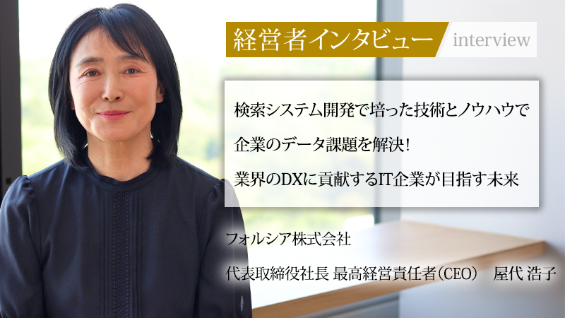 フォルシア株式会社は2001年の創業以来、旅行関連企業に対して、検索エンジンやオンライン販売プラットフォームなどを提供する会社だ。同社を率いる屋代浩子社長は野村證券の女性総合職1期生からMBA取得、ゴールドマン・サックス勤務という華麗なキャリアを持つ。「社員もユーザーもハッピーにしていきたい」と語る屋代氏にこれまでの道のり、事業内容、社風やビジョンについてうかがった。