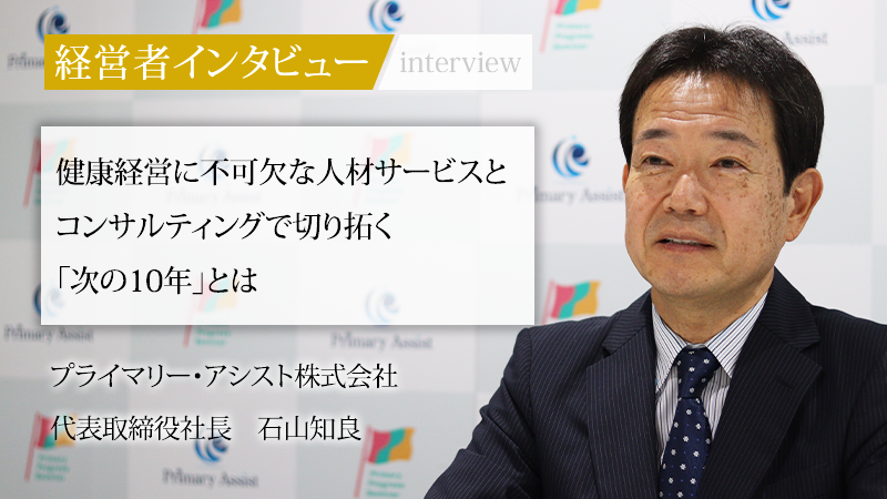 石山知良/埼玉県生まれ、1989年大学卒業後、上場企業メーカー・商社で、営業から企画・開発職、事業責任者まで幅広く経験。株式会社ミスミ(現・株式会社ミスミグループ本社)で経営者としての基礎を学び、その後医療人材会社の執行役員として従事。身内の介護を体験し、健康で長く働けること、また性別・年齢・学歴を問わず活躍できる職場環境づくりの重要性を実感。「自らが健康経営を実践し、それを世の中に普及させる」を掲げ、2015年プライマリー・アシスト株式会社を設立。