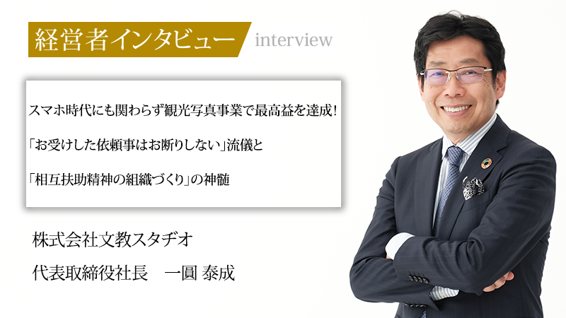 全国70カ所以上の観光施設で来場客の想い出づくりを支える、株式会社文教スタヂオ。誰もがスマートフォンで気軽に写真を撮る時代に、「想い出創造企業」を掲げ、過去最高益を更新し続けている。その強さの源泉は、顧客の要望に徹底して応える社員の姿勢と、社員一人ひとりが経営者視点を持ち互いに助け合うホラクラシー組織にあった。今回、代表取締役の一圓泰成氏に、大きな転機となった出来事や未来を見据えた社内改革について話をうかがった。