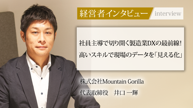 製造現場のアナログなデータ管理に変革を志す株式会社Mountain Gorilla。紙に書かない帳票システム「カカナイ」で製造業のDXを推進し、エンジニア派遣やAI・AR受託開発も手掛ける。代表取締役の井口一輝氏に、創業の経緯から事業の核心、そして日本のものづくりへの思いを聞いた。