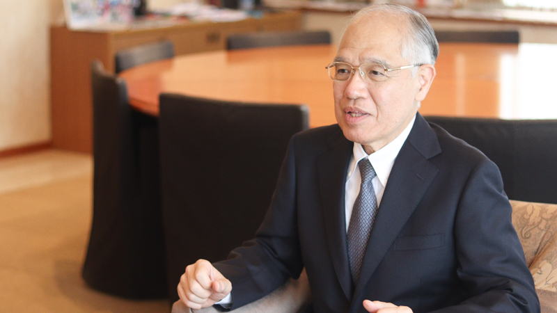 吉村盛善/1953年大阪府生まれ、関西学院大学卒。グンゼ産業株式会社(現GSIクレオス)に入社。1980年コーマ株式会社に入社。1992年同社代表取締役社長に就任。染色から編立加工仕上までの国内一貫工程を活かして高機能高付加価値靴下の開発に注力している。地域の活性化にも貢献したいと考えている。