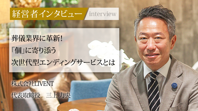 株式会社LIVENTは、「葬儀」という伝統的な領域に「花」「オーダーメイド」「テクノロジー」という新たな風を吹き込み、故人の人生を豊かに表現し、残された人々に寄り添うサービスを追求する会社だ。父親の影響で海外に目を向け、アメリカでイノベーションを学んだ経験から起業を志した、代表取締役の三上力央氏に、起業の軌跡や「花葬儀」の独自性、そして「葬儀」を起点に社会貢献を目指す同社の未来像について話を聞いた。