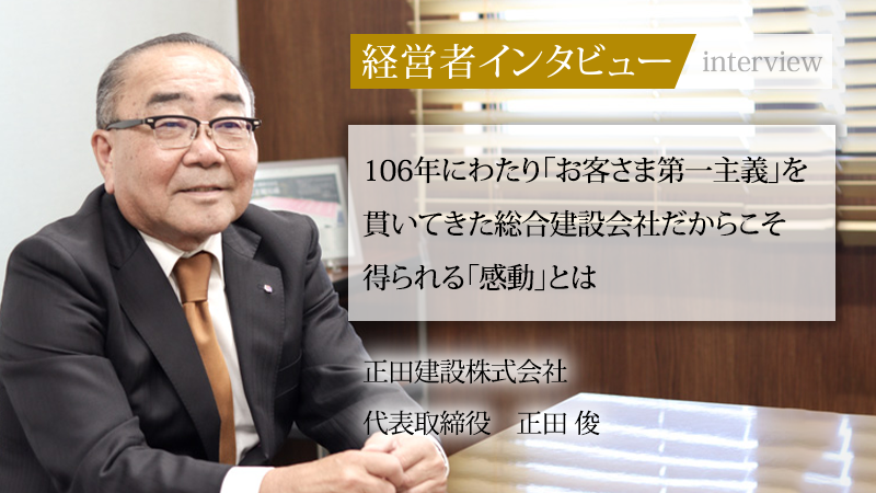 1919年、広島県安芸郡海田町で建築請負業を創業。以来106年の長きにわたり、戦争、バブル崩壊、リーマンショックなどさまざまな困難を乗り越え、地域の発展に貢献してきたのが正田建設株式会社だ。1996年に代表取締役に就任した正田俊氏は、バブル崩壊後の苦境の中、どのようにして「お客さま第一主義」を貫いてきたのか。そして今、次の世代に何を託そうとしているか。正田氏に話をうかがった。