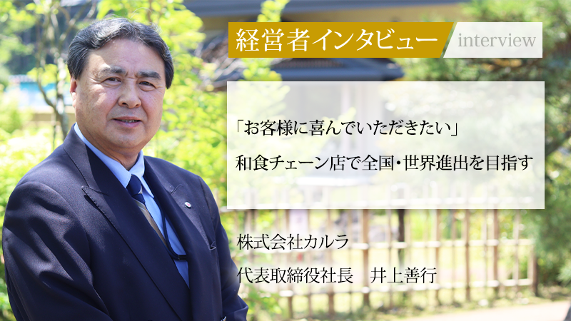 宮城県を中心に和食ファミリーレストラン「まるまつ」などを展開し、地域の食文化を支える株式会社カルラ。代表取締役社長の井上善行氏は、旅行業界から飲食の世界へ転身し、入社直後には社運を賭けた新業態「かに政宗」を大成功に導いた経験を持つ。今回、その独自の経営哲学と、会社の未来像について話を聞いた。