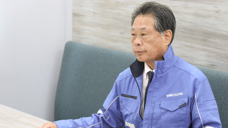 もともとは、弊社の親会社であり、さまざまな社会インフラの構築・維持などを行っているミライト・ワンに在籍しており、61歳の時に出向で新光電機の社長に就任。その後、ミライト・ワンを定年退職し、正式に社長に就任しました。