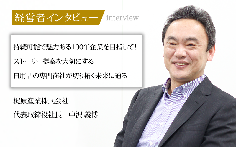 1934年に金物を中心とした家庭用品を扱う卸売りで創業した梶原産業株式会社。現在は100社を超えるメーカーと取引を行い信頼関係を築くなど、日用雑貨の商材を一手に扱う専門商社として成長を遂げてきた。