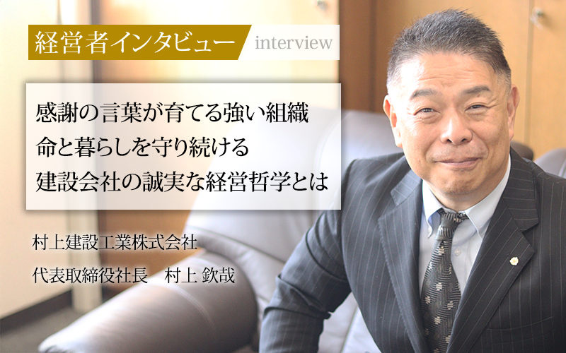 蛇口から水が出る。雨が降っても街は浸水しない。そんな当たり前の日常を支える村上建設工業株式会社。同社は愛知県を拠点に上下水道の整備や河川工事など、公共インフラ事業に特化した事業を展開している。土木工事を通じて市民の命と暮らしを守り続ける同社の代表取締役社長、村上欽哉氏に話をうかがった。