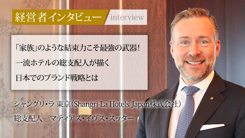 東京駅から徒歩約2分の最高の立地にあり、家族的な温かさと国際的なサービス水準を融合させたサービスを提供するシャングリ・ラ東京。このホテルの総支配人を務めるのは、数々の一流ホテルで経験を積んできたスイス出身のマティアス・イヴス・スッター氏だ。今回、スッター氏にホテル業界に進んだきっかけや経営者としての信念、今後の展開などについてうかがった。