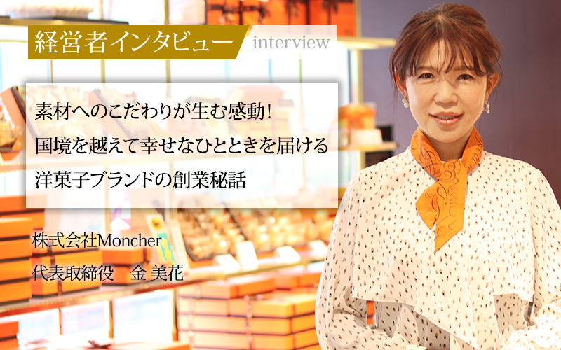 ロールケーキ「堂島ロール」で広く知られる株式会社Moncher。同社は洋菓子の製造販売をメインに事業を展開しており、定番商品のロールケーキから焼き菓子、チョコレート、紅茶まで、多彩な商品を提供している。現在、国内27店舗、海外46店舗を展開し、洋菓子で人々に幸せを届け続ける同社の代表取締役、金美花氏に話をうかがった。