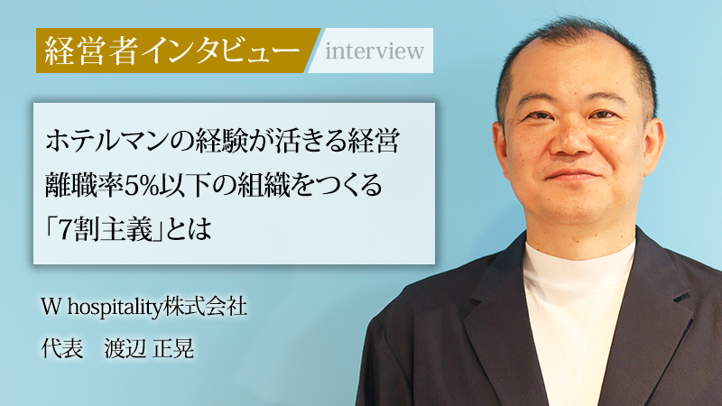 千葉県鎌ケ谷市を拠点に、介護事業を主軸として地域に根差したサービスを展開するW hospitality株式会社。スタッフ一人ひとりの「やりたい」という思いを起点に事業を創出し、全体の離職率は5%以下という驚異的な定着率を誇る。同社を率いるのは、ホテル業界出身という経歴を持つ代表の渡辺正晃氏だ。ホテルマンとして培ったホスピタリティと観察眼は、いかにして介護事業、そして組織づくりに活かされているのか。人を育て、地域と共に成長する独自の経営哲学に迫る。