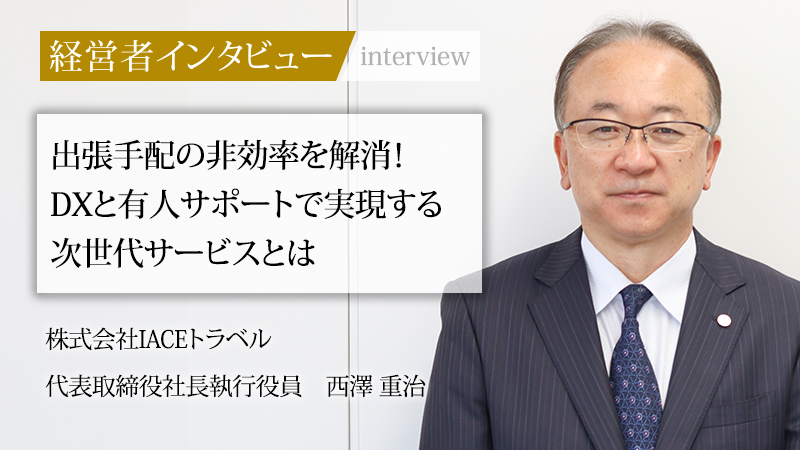 コロナ禍により人々の移動が止まり、旅行業界は未曾有の打撃を受けた。各社が存続をかけて奔走する中、株式会社IACEトラベルはクラウド型出張手配サービス「Smart BTM」のリリースで再成長への道を切り拓いた。その決断の背景には、9.11同時多発テロやSARSを原因とする危機を乗り越えてきた、西澤重治社長の経験と判断力がある。長年現場を知り尽くし、危機管理を突破力に変えてきた経営の源泉に迫る。
