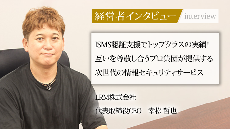 LRM株式会社は「Security Diet®」をミッションに掲げ、情報セキュリティサービスを展開している。各社の実情に深く寄り添う専門的なコンサルティングを強みとし、創業以来「プロフェッショナルであること」を哲学に成長を続けてきた。同社を率いる代表取締役CEOの幸松哲也氏が目指す「仲良しこよしのプロフェッショナル集団」とは、いかなる組織なのだろうか。売上100億円という壮大なビジョン達成に向けた戦略に迫る。