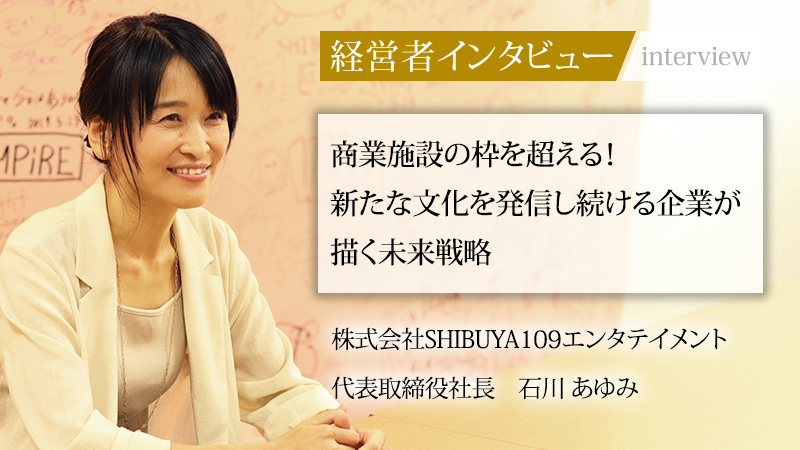 石川あゆみ/1977年愛知県生まれ。名古屋大学卒業。通信事業や出版系企業などを経て、2008年に東急電鉄(現・東急株式会社)に入社。2021年に株式会社SHIBUYA109エンタテイメントの代表取締役社長に就任。企業理念「Making You SHINE! 〜新しい世代の“今”を輝かせ、夢や願いを叶える〜」に基づき、商業施設運営を基軸に様々な事業を展開している。