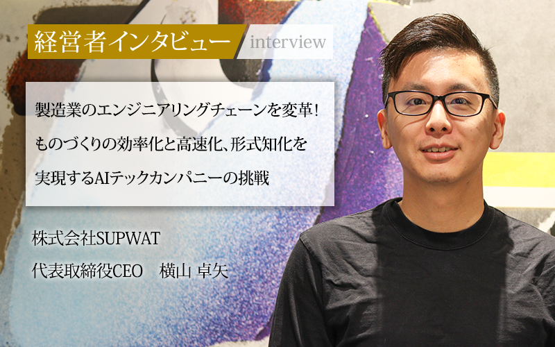 製造業における上流工程のDXを推進する株式会社SUPWAT。同社が開発・提供するプラットフォーム「WALL」は、企業が持つデータとAIをかけ合わせることで、ものづくりの効率化と高速化、形式知化を実現している。機械工学の専門知識と先端技術を融合させたアプローチで事業を展開する同社代表取締役CEOの横山卓矢氏に話をうかがった。