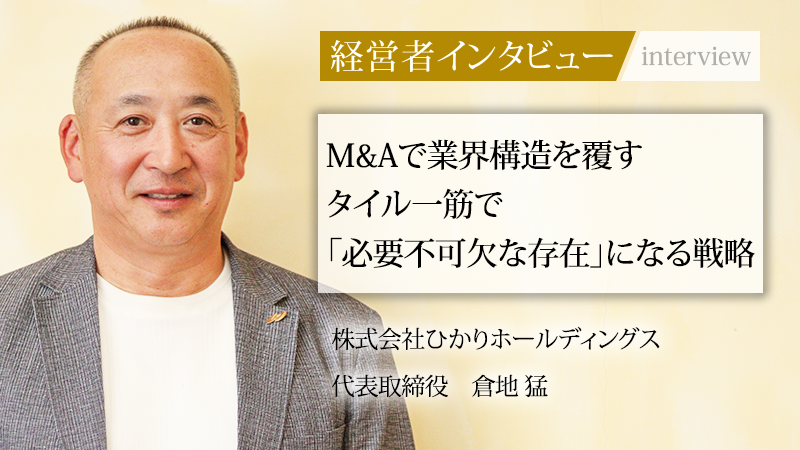 岐阜県多治見市に本社を構え、タイル事業を核に成長を続ける株式会社ひかりホールディングス。同社はタイルの加工から販売、工事、改修までを一貫して手がける。この体制を強みに、相乗効果を重視したM&A戦略で事業を拡大してきた。同社を率いるのは、代表取締役の倉地猛氏である。父の急逝によって多額の借金と共に事業を継承。幾多の困難を乗り越え、東京プロマーケットへの上場を成し遂げた人物だ。上場後、一度は目的を見失いながらも「理念経営」と出会い、再び力強く歩み始めた。その挑戦の軌跡と未来への展望に迫る。