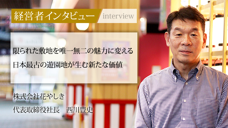 西川豊史/1963年生まれ。株式会社ナムコ(現・株式会社バンダイナムコエンターテインメント)に入社後、一貫してエンターテインメント業界に身を置く。アーケードゲームの営業として、顧客との対話を重視するスタイルを確立する。その後、海外事業や経営企画などにも従事。2020年に株式会社花やしきの非常勤取締役、2021年4月より同社の代表取締役に就任。170年以上の歴史を持つ日本最古の遊園地の新たな歴史を紡いでいる。