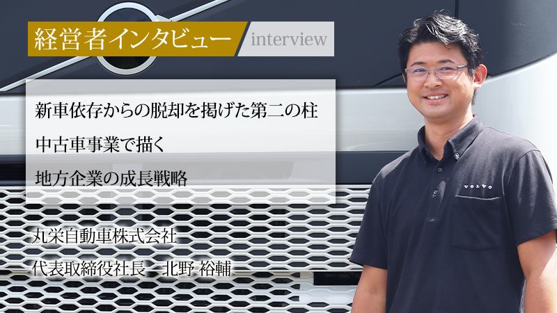 兵庫県丹波市に本社を構える丸栄自動車株式会社。同社はボルボ・トラックの正規ディーラーとして地域の物流を支えている。軽自動車から大型トラックまで幅広く取り扱い、近畿・北陸エリアをカバーする広域なサービスネットワークが強みだ。3代目社長の北野裕輔氏は、「言われた以上の価値を提供する」という哲学を経営の核に据える。中古車ビジネスを新たな柱に「売上倍増」を掲げる同氏。従業員への豊かな還元も目指すその軌跡と展望について話を聞いた。