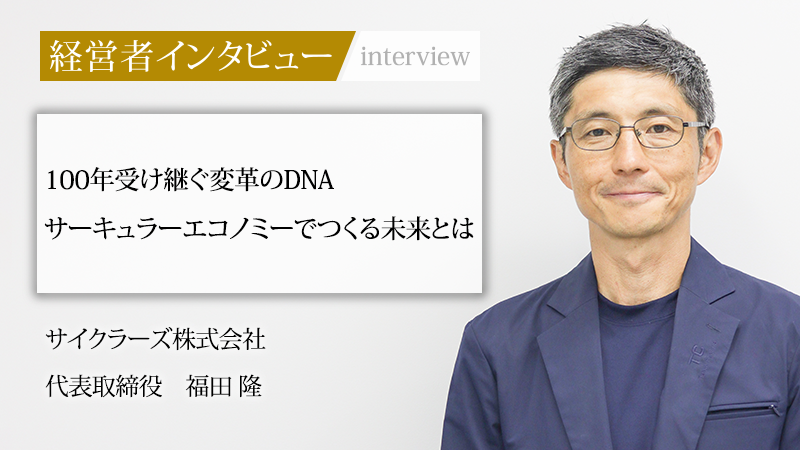 1世紀以上にわたり、時代の要請に応え、事業を変革し続けてきたサイクラーズ。その歴史は、未来を見据えた『決断の歴史』でもある。父の急逝、28歳での社長就任、月1500万円の赤字という逆境を乗り越えた経験は、福田氏の言葉に揺るぎない説得力を与える。「変化を恐れない」というDNAは、今や「サーキュラーエコノミーを追求し、持続可能な社会をつくる」という明確なパーパスと結びついた。そして、社会をより良い方向へ導くための羅針盤となっている。同社が描く循環の未来に、大きな期待を寄せたい。