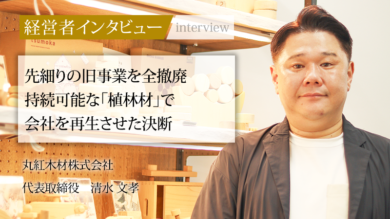 持続可能な「植林材」を主軸に、木材専門商社として独自の地位を築く丸紅木材株式会社。同社は8期連続の赤字という倒産寸前の危機から、代表取締役である清水文孝氏のリーダーシップのもと、劇的なV字回復を遂げた。旧来のビジネスモデルを抜本から見直し、「正しい商売」という哲学を掲げて事業転換を断行。現在は、植林材の加工販売事業と、国産ヒノキを活用した木製おもちゃブランド「IKONIH(アイコニー)」の二本柱で成長を続ける。幾多の困難を乗り越え、会社を再生させた清水氏の経営手腕と、その根底にある揺るぎない信念に迫る。