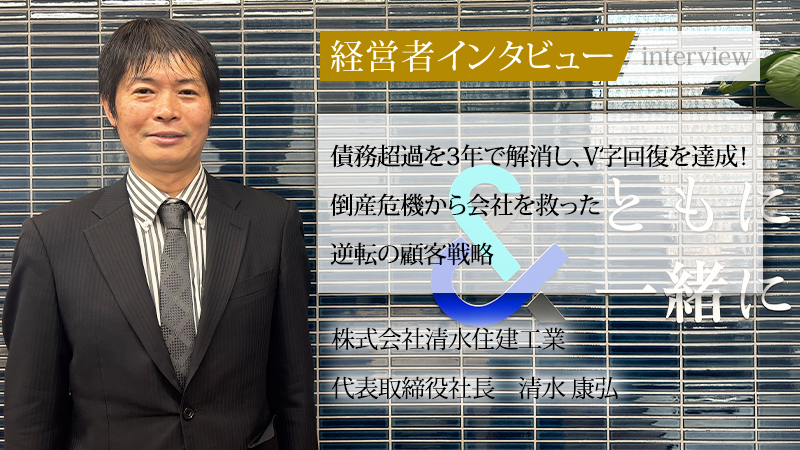 長野県を拠点に、地域の工務店へ向けた建材販売や経営支援を手がける株式会社清水住建工業。同社は取引先を地元の工務店に特化することで、一社一社と深い信頼関係を築き、その成長を力強く後押ししている。3代目として事業を承継した代表取締役社長の清水康弘氏は、かつて債務超過という危機的状況に直面した。笑い方さえ忘れるほどの苦境のなか、「支えてくれた人への恩返し」という強い思いを原動力に、会社をV字回復へと導いた。社員、顧客、そして地域社会の幸福を追求する同氏の経営哲学と、その軌跡に迫る。