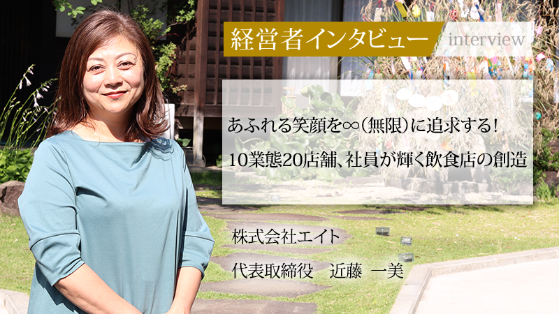 このような背景のもと、神奈川県を中心に10業態20店舗を展開する株式会社エイトは、独自の経営哲学と現場主導の取り組みによって、時代の変化に柔軟に対応し、業界内で際立つ存在となっている。同社は、社員一人ひとりの「笑顔」と「成長」を追求することを企業理念の根幹に据え、それによってスタッフが自ら考え行動し、顧客にとって満足度の高いサービスを生み出している。その独自の経営哲学と未来への展望について、代表取締役の近藤一美氏にうかがった。