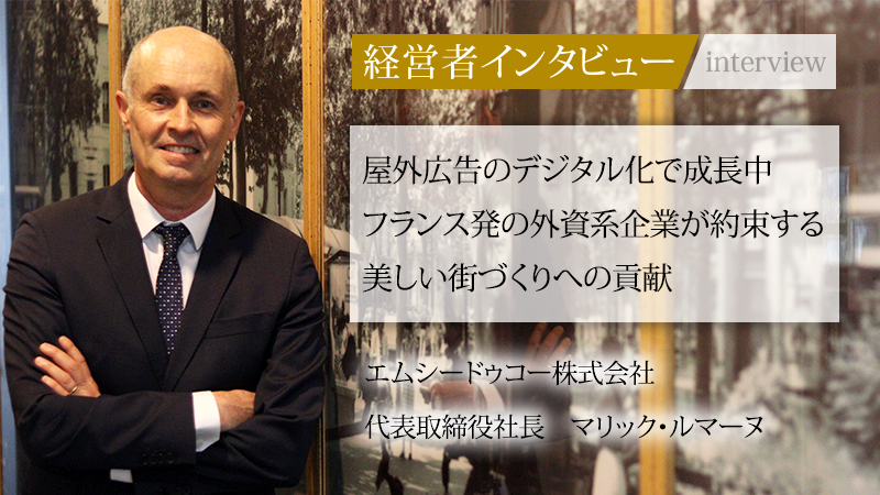 世界的な屋外広告会社ジェイシードゥコーの日本法人として、2000年に設立されたエムシードゥコー株式会社。バス停や情報パネルなど、屋外の公共空間にある設備「ストリートファニチャー」と広告事業をかけ合わせ、日本国内に広めている企業だ。2022年に代表取締役社長に就任したマリック・ルマーヌ氏に、事業の強みや今後の展望をうかがった。
