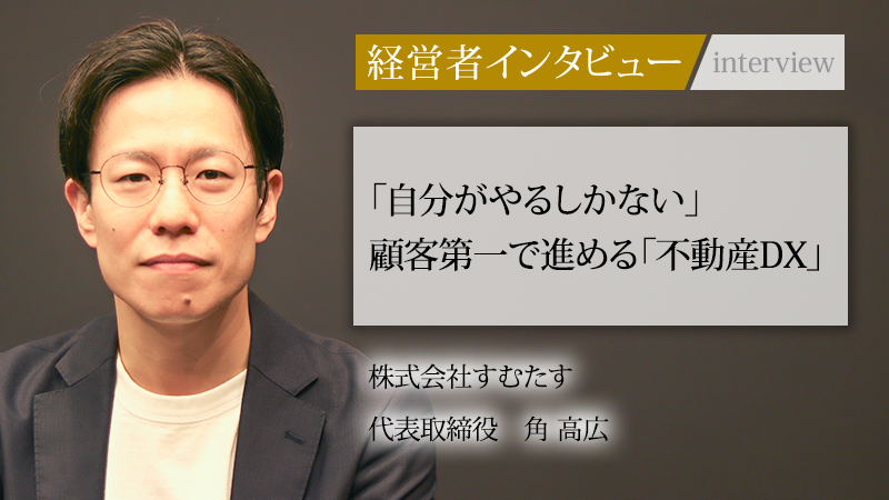 アナログな商慣習と情報の非対称性が根強い不動産取引。その課題をテクノロジーで解消しようとするのが、株式会社すむたす代表取締役の角高広氏である。同氏は、もともと起業を志望していたわけではなかったが、業界の課題に直面し「自分がやるしかない」と感じ、起業に踏み切ったという。顧客価値を最優先とする独自の事業運営で、不動産取引体験を変革し続ける。「顧客のためにならないものはやらない」という判断軸のもとに成長を続けている同社の軌跡を追った。