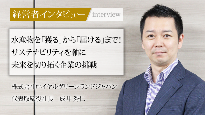 グリーンランド政府が100%株式を保有する国有企業「ロイヤルグリーンランド」。その日本法人が株式会社ロイヤルグリーンランドジャパンだ。漁獲から加工、販売までを一貫して手がける世界でも稀有なビジネスモデルを強みに、日本の食卓へ高品質な水産物を供給している。同社は私たちが食品スーパーや外食チェーン等で口にする甘エビの半数近いシェアを持つ。小売りの現場経験を原点に、変化の激しい水産業界で舵を取る代表取締役社長の成井秀仁氏。そのキャリアから見えてきた仕事の哲学、そして事業の根底に流れるサステナビリティへの熱い思いに迫る。