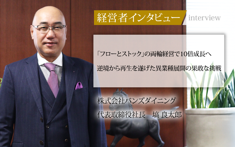 塙良太郎/慶応義塾大学卒業後、千葉県議会議員秘書を経て、25歳で父の会社を承継。多額の債務整理に成功し、事業を再生。2013年から東京での事業を本格化し、2014年に社名を株式会社バンズダイニングに変更。現在は東京、千葉、仙台を拠点に、飲食、製造、不動産など複数の事業を展開している。