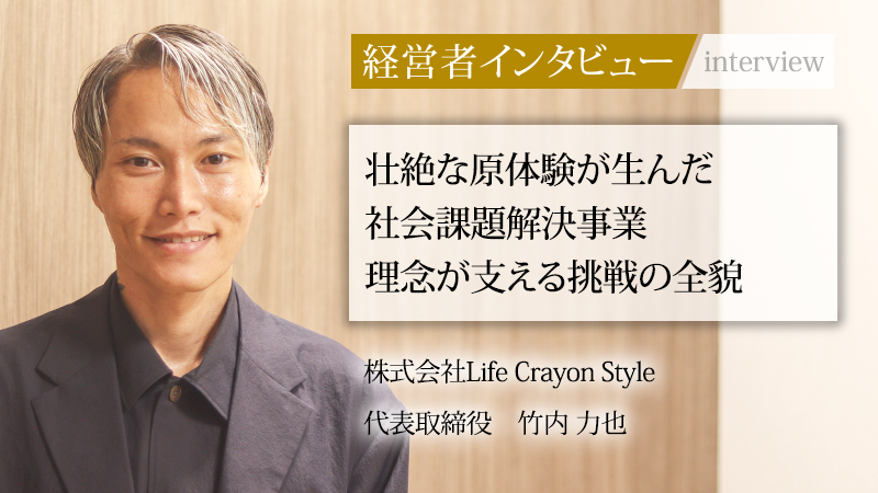 社会課題の解決を目的とした事業創造や起業家の育成、システム開発などを通じて事業を展開する、株式会社Life Crayon Style。現在では16社のグループ企業を束ねている。その根幹には「全世界の希望格差を是正する」という壮大なミッションがある。このミッションは、代表取締役である竹内力也氏の壮絶な半生から生まれたものだ。生まれつきの病、過酷な家庭環境、そして社会からの隔離。死と隣り合わせの経験は、いかにして社会課題解決という事業に結実したのか。理念で人を惹きつけ、仲間と共に未来をつくる同社の強さの源泉、そして組織づくりに悩む全ての経営者へのヒントを聞いた。