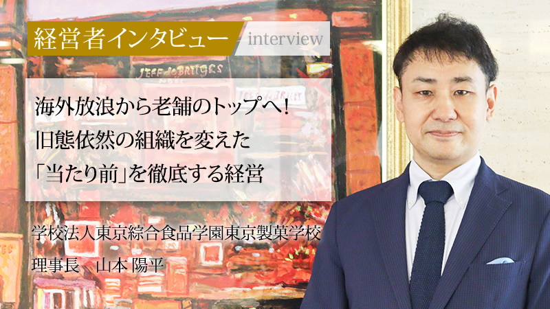 日本で最も歴史ある製菓専門学校である東京綜合食品学園東京製菓学校。戦後間もない時代に「食文化の発展が日本の復興につながる」という創業者の理念のもと設立された。海外での経験や生花店の起業など、多様なキャリアを経て、同校の経営を担うことになったのが、理事長の山本陽平氏である。創業者である祖父の思いを受け継ぎ、旧態依然とした組織にメスを入れ、大胆な経営改革を断行。利益追求とは一線を画す「菓子は人なり」の教育理念を胸に、業界の未来をどう見据えているのか。その軌跡と教育にかける情熱に迫る。