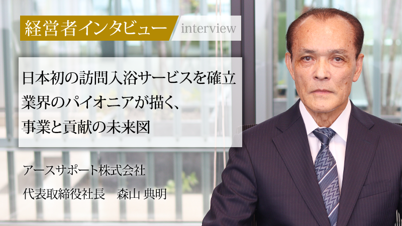 約50年前、日本で初めて訪問入浴サービスを事業として確立し、在宅介護の歴史を切り拓いてきたアースサポート株式会社。「お客様第一主義」を理念に掲げ、質の高いサービスで業界を牽引する。福祉に関する知識がなかった青年が、ある出来事をきっかけに、常識を覆す挑戦を始めた。業界のパイオニアとして、今も最前線で未来を創造し続ける代表取締役社長の森山典明氏。今回、その軌跡と信念を聞いた。