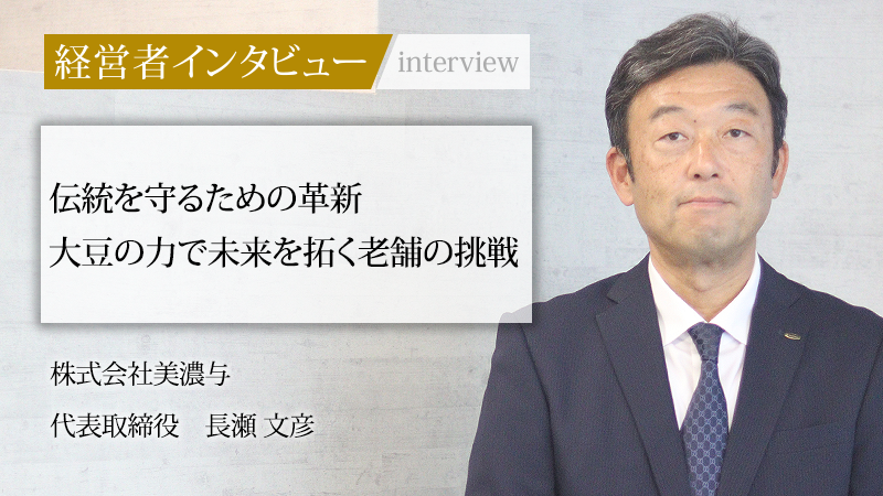 京都で創業126年を迎えた株式会社美濃与。全国の和菓子店に最高品質の原材料を供給し、日本の食文化を支えている。長年の歴史で培った信頼を基盤としながら、近年は自社で大豆焙煎所を設立。きな粉の研究開発を深化させるとともに、革新的な商品を次々と生み出している。業界が直面する課題に真摯に向き合い、老舗の未来を切り拓く4代目、代表取締役の長瀬文彦氏。その事業哲学と今後の展望について話を聞いた。