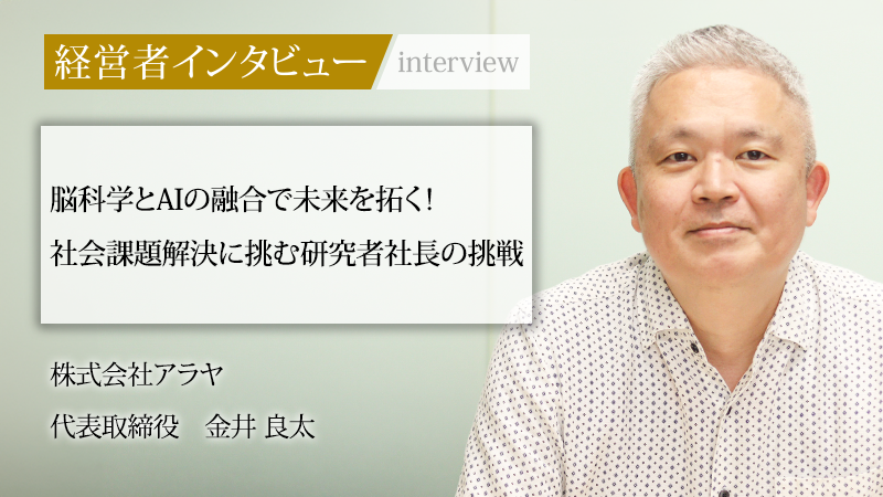 脳科学とAI(人工知能)を融合させた「ニューロAI」によって社会変革を推進する株式会社アラヤ。同社を率いる代表取締役の金井良太氏は、オランダ、アメリカ、イギリスと海外で研究キャリアを積んだ後に創業した経歴の持ち主である。脳の研究から始まった探求は、AIとの出合いによって新たな展開を見せ、現在では建設業界の革新から研究支援まで、多岐にわたる分野で独自のソリューションを提供している。今回、困難を乗り越える原動力となった研究への愛と事業への思いについて、詳しく話を聞いた。