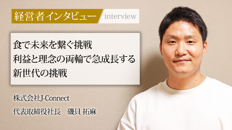 居酒屋の経営を主軸に、設立からわずか数年で28店舗を展開する急成長企業、株式会社J-Connect。コロナ禍という未曾有の危機を乗り越え、V字回復を遂げた。その原動力は、創業者である同級生4名の強固な絆と、逆境から生まれた「感謝」の経営哲学である。事業拡大のみならず、日本の食文化の継承や子どもたちの未来支援にも情熱を注ぐ代表取締役社長の磯貝拓麻氏に、独自の経営論と未来への展望を聞いた。