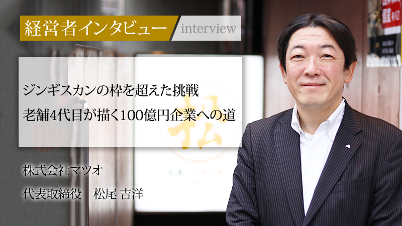 北海道の地で創業し、今や全国にその名を知られる味付きジンギスカンのパイオニア「松尾ジンギスカン」。同店を運営する株式会社マツオは秘伝のタレを武器に、レストラン運営と食品製造・販売の二つの顔を持つ独自の強みを確立している。父の急逝により、20代で予期せず家業に戻った代表取締役の松尾吉洋氏。伝統を守り抜く一方で、「停滞は後退」との信念から、大胆な事業のスクラップ&ビルドやリブランディングを実行した。近年ではM&Aやフランチャイズ事業にも乗り出し、人気フットウェアブランド「スケッチャーズ」のフランチャイズ運営を手がけるなど、その挑戦はとどまることを知らない。「三方よし」の精神を胸に、老舗の暖簾を背負いながら次なる成長を目指す同氏に、その軌跡と未来への展望を聞いた。