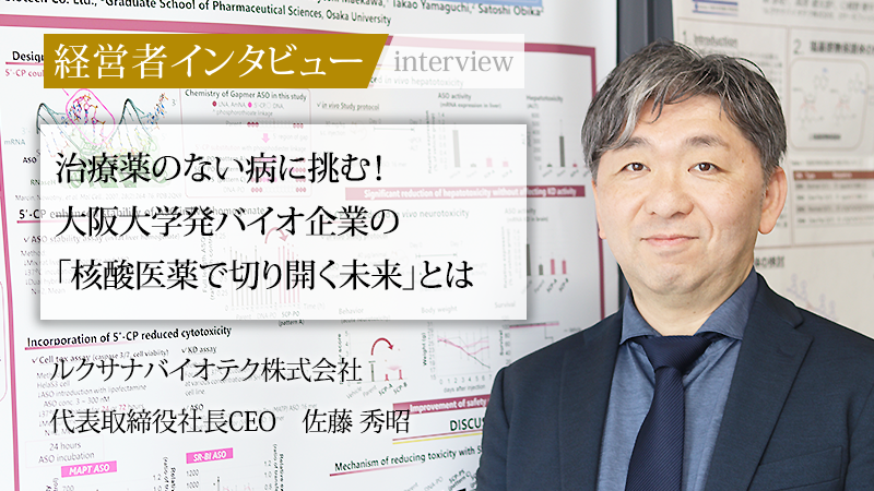 核酸医薬品の開発を主な事業としているルクサナバイオテク株式会社は、製薬会社との共同創薬事業や、自社創薬事業などを手がける大阪大学発の創薬ベンチャー企業だ。