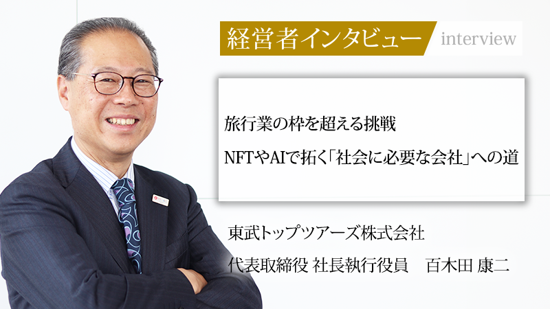 東武グループレジャー部門の中核として旅行事業を展開する、東武トップツアーズ株式会社。同社は法人向けソリューションや地域創生にも力を入れている。その舵を取る代表取締役社長執行役員、百木田康二社長のキャリアは平坦な道ではなかった。希望によらない本社経理部への配属から始まり、テロや戦争が頻発した「暗黒の時代」の海外赴任、帰国後の不遇の時代。数々の逆境を乗り越えてきたリーダーが語る独自の価値観と、未来への展望についてうかがった。
