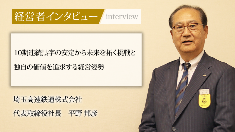 東京都心と埼玉県を結び、地域の足として重要な役割を担う埼玉高速鉄道株式会社。同社は、「埼玉スタジアム2002」へのアクセス路線でもあり、「SR」の愛称で地域に密着した強固な関係性を築く。2024年に代表取締役社長へ就任した平野邦彦氏は、土木技術者としてキャリアを始め、国鉄・JRで大型開発事業を歴任した多様な経験を持つ人物だ。社長就任後、社の変革期を牽引し、常に新しい可能性に挑み続ける平野氏に、その歩みや会社の現状と未来、そして次代を担う若者への思いを聞いた。