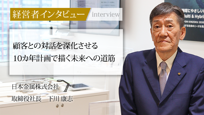 日本金属株式会社は、特殊鋼やマグネシウム合金などの圧延・加工事業を手がける企業だ。同社は顧客の個別ニーズに深く応える「受注生産方式」と、素材から二次加工までを一貫して手がける幅広い製品技術を強みとしている。30年にわたる営業経験と、その後の管理部門での改革実績を経て2017年に取締役社長へ就任したのが下川康志氏である。常に「どうすればできるか」を問い続け、事業構造の変革を掲げる同氏に、これまでのキャリアで得たもの、会社の強みと今後の展望、そして未来を支える人材育成について話を聞いた。