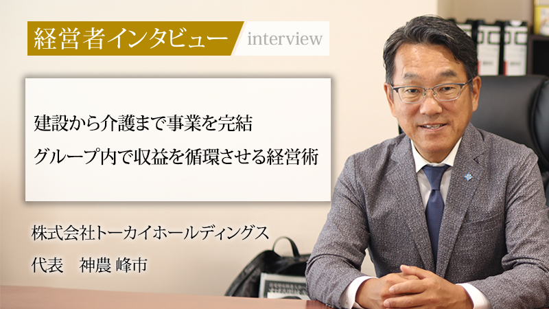京都を拠点に、建設資材、生コンクリート、建設、不動産、そして「環境」と「介護」という、多岐にわたる事業を展開する株式会社トーカイホールディングス。各事業会社が独立性を保ちながら組織的に連携し、グループ全体で相乗効果を生み出す独自の経営モデルを確立している。この多角的な事業ポートフォリオを一代で築き上げたのが、代表の神農峰市氏だ。父親から事業を継承後、次々と新規事業を立ち上げ、時には大きな挫折を経験しながらも、その情熱で挑戦を続けてきた。数々の事業を成功に導いてきた同氏の経営哲学と、グループの未来を支える事業の展望に迫る。
