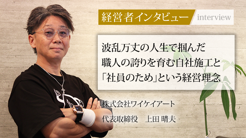千葉県を拠点に、高品質な自社施工を貫く株式会社ワイケイアート。同社を率いる代表取締役の上田晴夫氏は、飲食業での成功と挫折を経てリフォーム業界へ転身した経歴を持つ。幾多の苦難と出会いを経て確立された「社員のため」という確固たる理念は、いかにして生まれ、組織を動かしているのか。その軌跡と未来への展望に迫る。