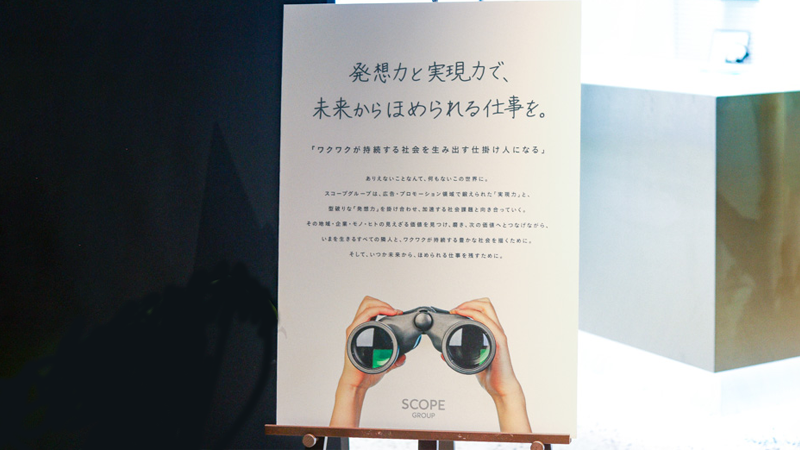 また、パーパスの実現に向けて、今年度もう一つの対外的なブランドスローガンを策定しました。パーパスが企業の人格を表すものであるならば、ブランドスローガンは私たちの強みを明文化した自己紹介のようなもの。それが「THE ACTIVATER COMPANY なんでもアクティベートする会社、スコープ」です。