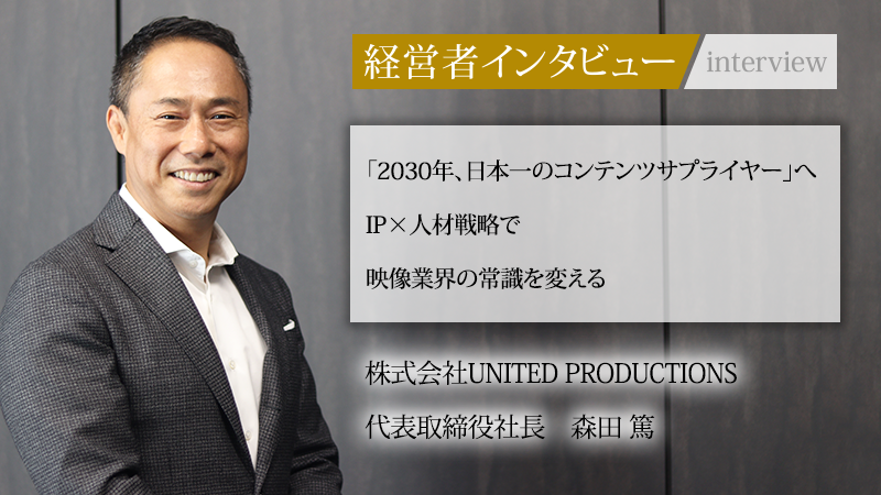 テレビ番組制作を主軸に、ドラマや映画、CMまで手掛ける株式会社UNITED PRODUCTIONS。同社は戦略的なM&Aを重ね、わずか5年で売上規模を約7倍に拡大させるなど、業界屈指の成長を誇る。その変革を率いるのが、代表取締役社長の森田篤氏だ。大手商社から映像業界へ転身し、「行列のできる法律相談所」「しくじり先生 俺みたいになるな!!」などの人気番組を制作。同氏は今、テレビ局の下請けという従来の構造を覆そうとチャレンジしている。そして、自社でIP(知的財産)を保有する「日本一のコンテンツサプライヤー」になるという目標を掲げる。その道のりと未来への展望に迫った。
