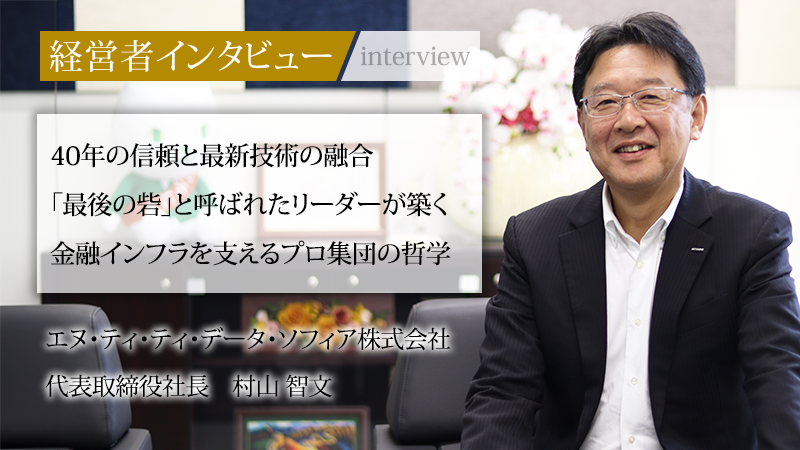 エヌ・ティ・ティ・データ・ソフィアは、りそなグループのシステム開発部門を前身とする。現在はNTTデータグループの一員としてフルITアウトソーシングを担う企業だ。銀行の基幹業務を支える社会インフラの開発・運用で培った安定した技術力を持ち、NTTデータの最新技術と融合させることで独自の強みとしている。2022年に同社の代表取締役社長へ就任したのが村山智文氏だ。NTTデータ時代には、数々の大規模プロジェクトを「最後の砦」として完遂させてきた。そのキャリアで培われた「仲間を大切にする」という哲学は、同社の経営にも色濃く反映されている。本記事では、村山氏の歩みと共に、同社が目指す未来像に迫る。